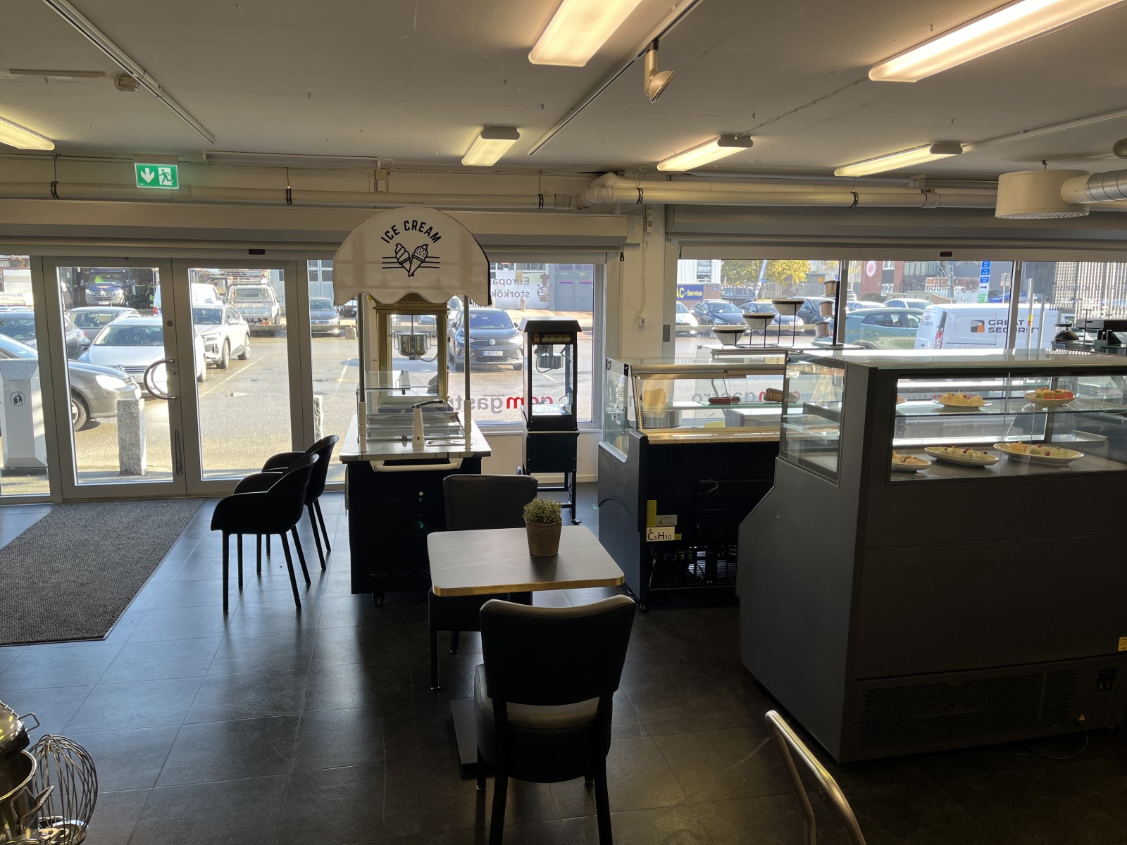 Parkering och garage finns på fastigheten i anslutning till lokalen. Möjlighet till elbilsladdning. Kundparkering precis utanför entrédörr.